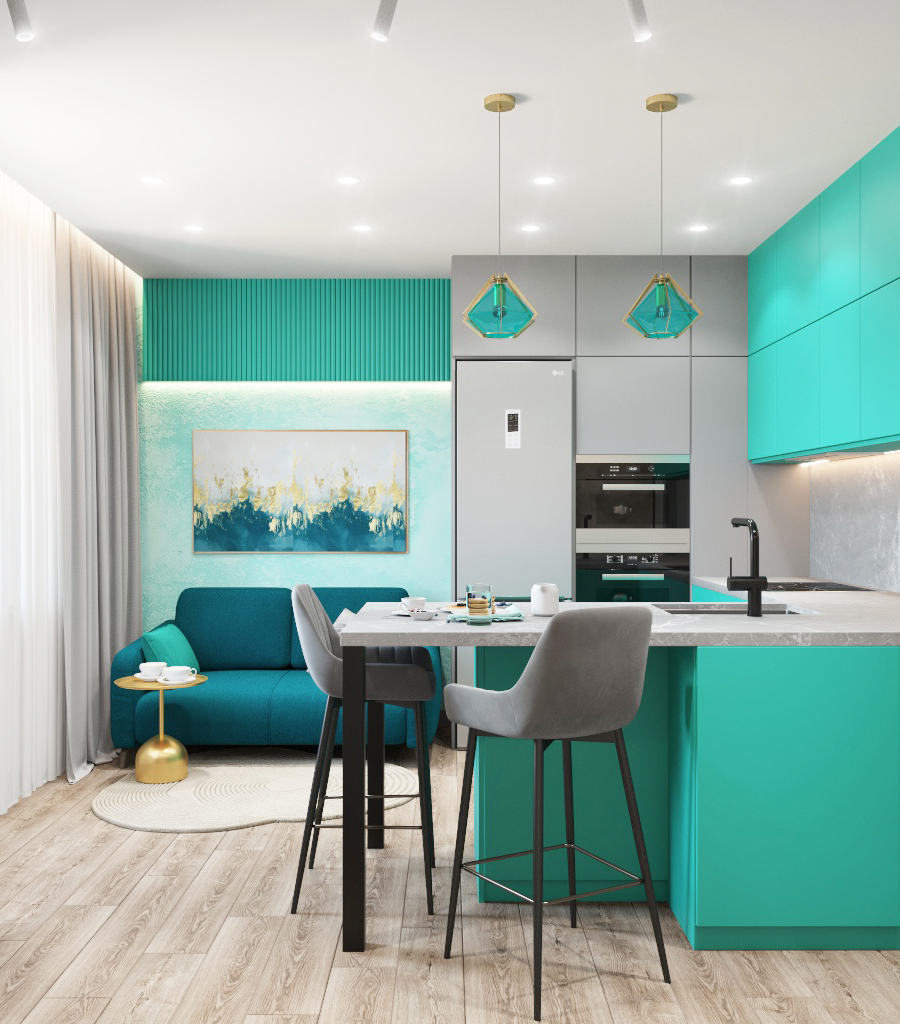 Квартира с экстремальными цветовыми сочетаниями. Главный запрос заказчицы, создать состояние отпуска дома, в северном городе. Яркая палитра подобрана под ее темперамент, колористические акценты мы гармонизировали серым и песочным цветами. Санузел было решено увеличить за счет коридора из-за необходимости оставить и ванну, и душевую. Прачечная размещена в гардеробной, в каждой комнате продуманы зоны хранения.