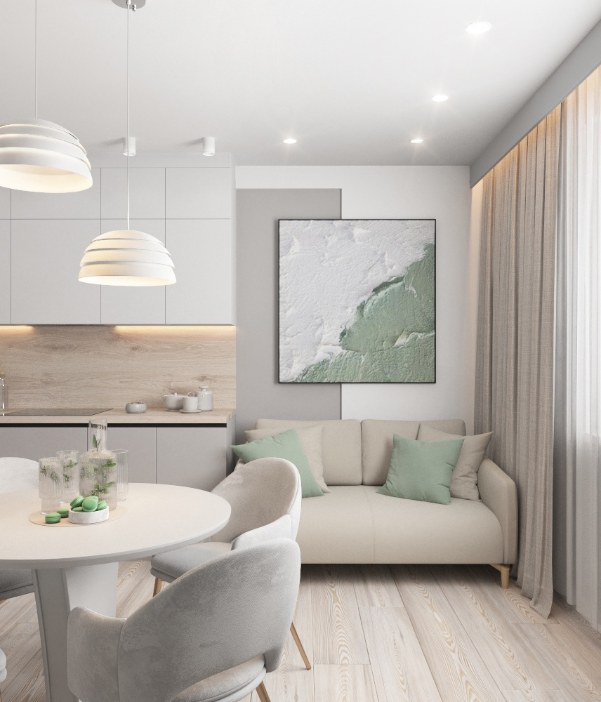 Проект разработан на основе планировки от застройщика без внесения изменений в текущий план. Теплая, сдержанная палитра с нюансными цветовыми акцентами. Основное пространство мы сделали свободным просторным для игр, заменив обычные кровати на выдвижную. В спальне предусмотрели временное спальное место для малыша. Прачечную разместили в ванной комнате. В каждой комнате предусмотрели вместительные зоны хранения.